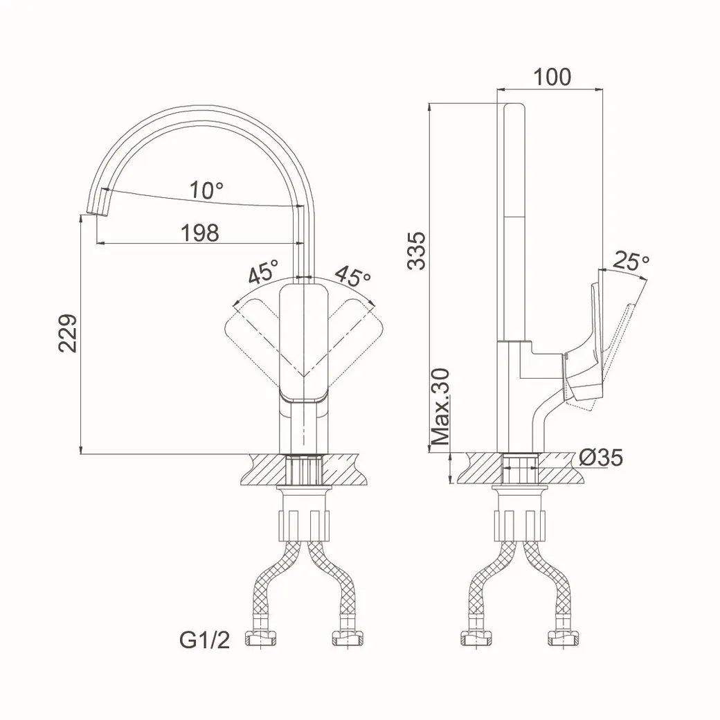 • Гибкая подводка 40 см идёт в комплекте для быстрой установки.