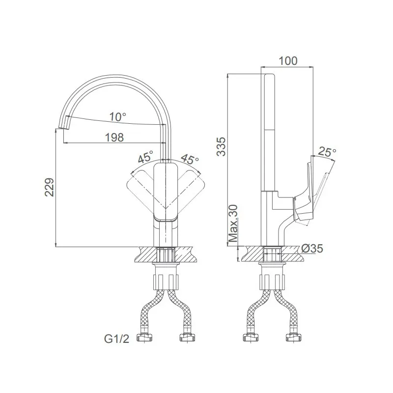 • Гибкая подводка 40 см идёт в комплекте для быстрой установки.