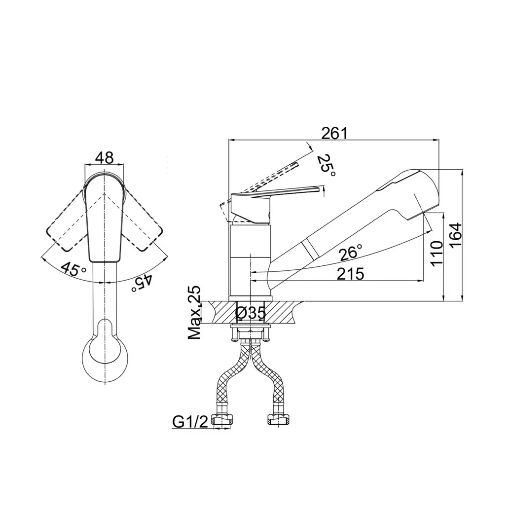 • Гибкая подводка 40 см идёт в комплекте для быстрой установки.