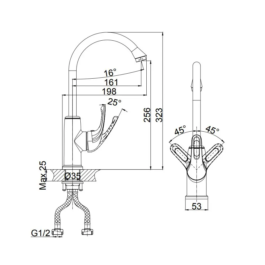 • Гибкая подводка 40 см идёт в комплекте для быстрой установки.