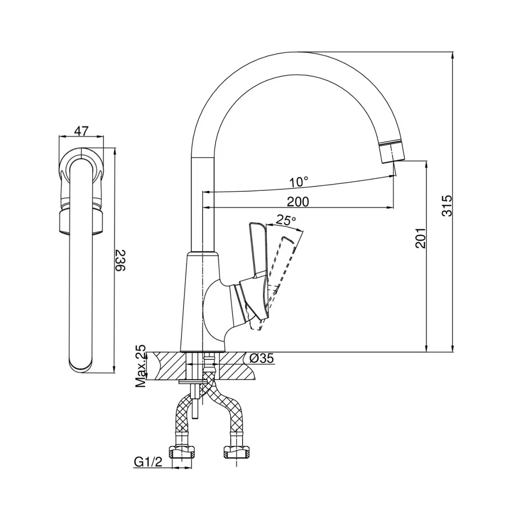 • Гибкая подводка 40 см идёт в комплекте для быстрой установки.