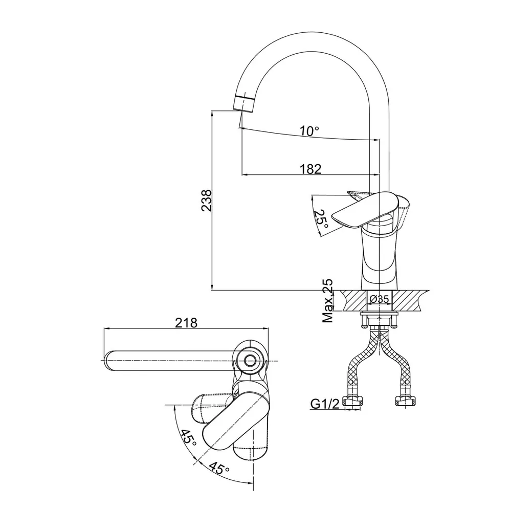 • Гибкая подводка 40 см идёт в комплекте для быстрой установки.