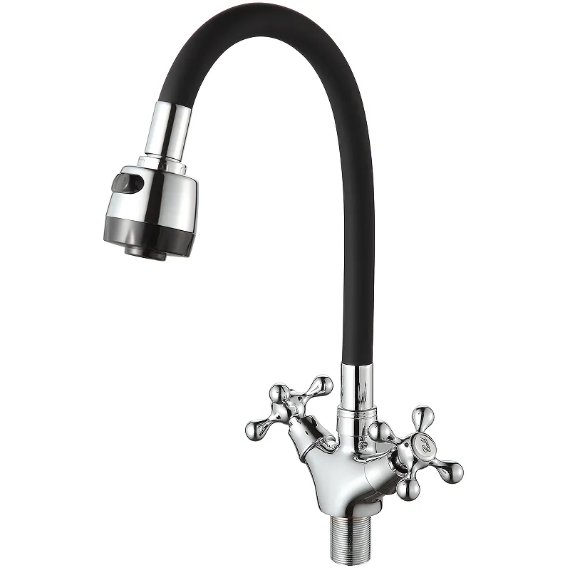 Кухонный смеситель D-Lin D153810-1T с поворотным и гибким изливом — это стильное и функциональное решение для вашей кухни. Хромированное и черное покрытие подчеркивает его современный дизайн, обеспечивая привлекательный внешний вид.