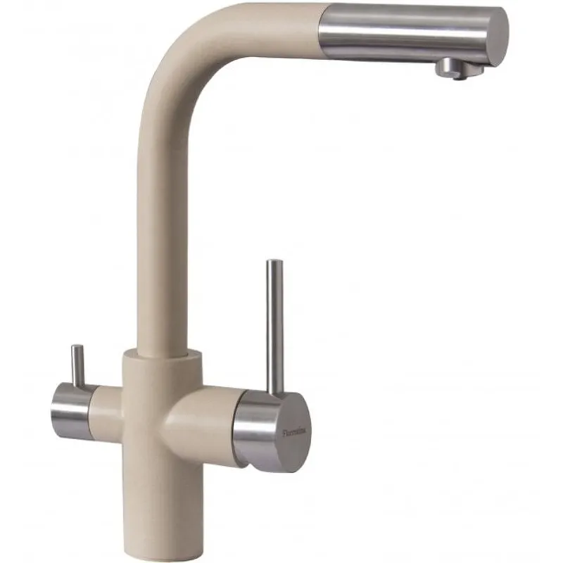 Смеситель для кухни Florentina Кристалл 333.32H.2123.202 с функцией фильтрации воды и выдвижным изливом.Характеристики: Цвет: шампань. Материал: латунь. Размер решетки (ШхВхД): 52х342х293 мм. Тип смесителя: однорычажный. Выдвижной излив. Подключение под фильтр. Керамический картридж 40 мм. Излив: поворотный. Монтаж: на раковину. В комплекте поставки: Смеситель. Гибкая подводка.