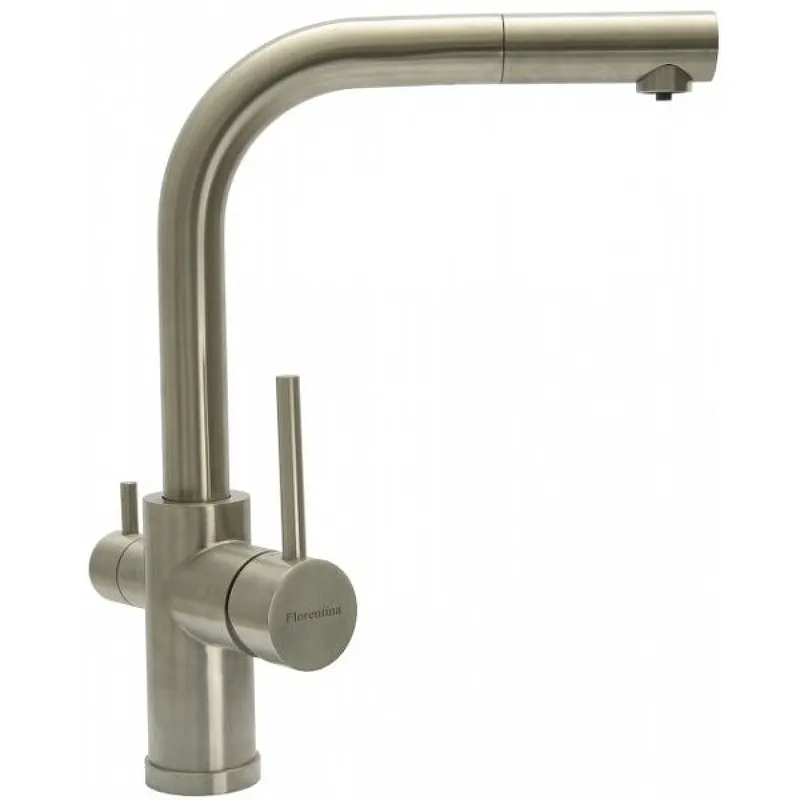 Смеситель для кухни Florentina Кристалл 333.33H.2123.900 с поворотным и выдвижной изливом под фильтр.Выполнен в минималистическом дизайне, великолепно сочетающийся в современном интерьере кухни.Характеристики: Цвет: нержавеющая сталь. Материал: нержавеющая сталь. Тип управления: однорычажный. Керамический картридж 35 мм. Cтандарт подводки: G 1/2. Монтаж: на мойку. Излив: выдвижной, поворотный. Гибкая подводка. В комплекте поставки: смеситель, гибкая подводка, подключение для фильтра, крепление, инструкция.