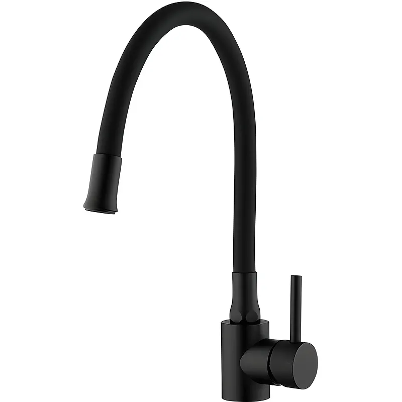 Смеситель для кухни Frap F40994-6 с гибким изливом.Характеристики: Цвет: черный матовый. Материал: нержавеющая сталь, силикон. Механизм: керамический картридж. Управление: однорычажное. Излив: поворотный, гибкий. Стандарт подводки: G 1/2. Тип подводки: гибкая. Монтаж: на мойку, на столешницу. Аэратор. В комплекте поставки: Смеситель. Гибкая подводка. Комплект креплений.