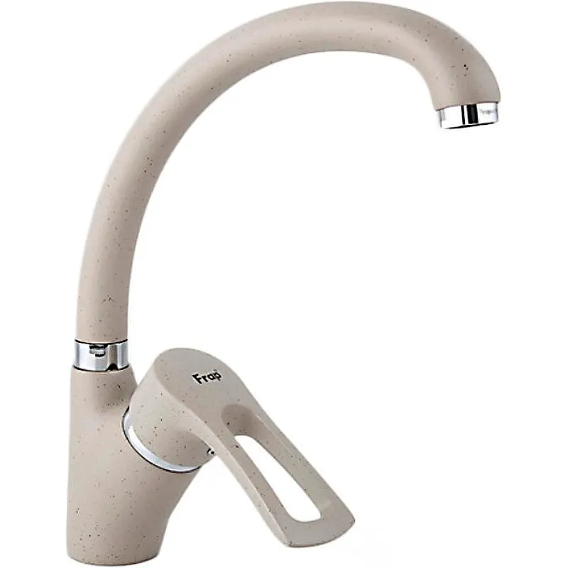 Смеситель для кухни Frap F4166-10.Характеристики: Цвет: светло-бежевый. Материал: латунь. Управление: рычажное. Излив: поворотный. Монтаж: на мойку, на столешницу. Тип крепления: гайка. Механизм: керамический картридж. Стандарт подводки: G 1/2. Тип подводки: гибкая подводка. Аэратор. В комплекте поставки: Смеситель. Гибкая подводка. Комплект креплений.