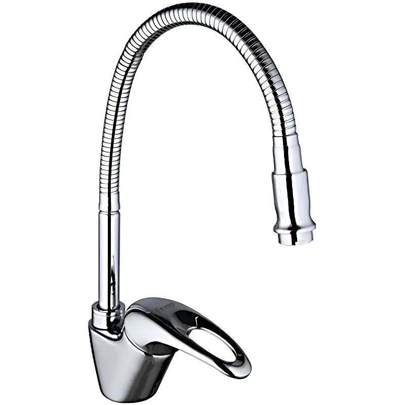 Смеситель для кухни Frap F4303-1 с гибким изливом.Характеристики: Цвет: хром. Материал: латунь. Механизм: керамический картридж 40 мм. Управление: рычажное. Излив: поворотный, гибкий. Стандарт подводки: 1/2. Тип подводки: гибкая. Монтаж: на мойку. Отверстий для монтажа: 1. Аэратор. Тип крепления: гайка. В комплекте поставки: Смеситель. Гибкая подводка. Комплект креплений.