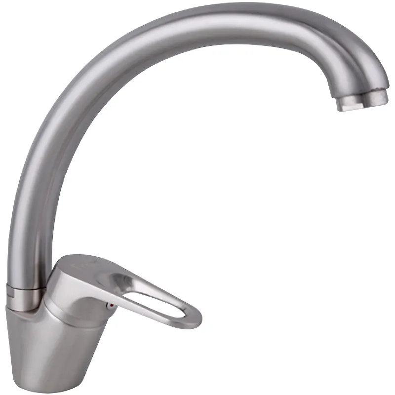 Смеситель для кухни Frap H13-1 F4113-5.Характеристики: Цвет: сатин. Материал: латунь. Управление: рычажное. Излив: поворотный. Монтаж: на мойку, на столешницу. Тип крепления: гайка. Механизм: керамический картридж. Стандарт подводки: G 1/2. Тип подводки: гибкая подводка. Аэратор. В комплекте поставки: Смеситель. Гибкая подводка. Комплект креплений.