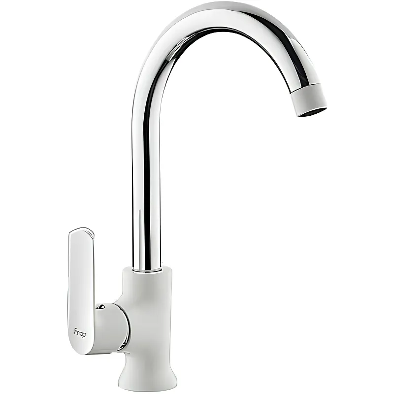 Смеситель для кухни Frap H31 F4031.Характеристики: Цвет: белый, хром. Материал: латунь. Механизм: керамический картридж 35 мм. Управление: однорычажное. Излив: поворотный. Стандарт подводки: 1/2. Тип подводки: гибкая. Монтаж: на мойку, на столешницу. Отверстий для монтажа: 1. Аэратор. Тип крепления: гайка. В комплекте поставки: Смеситель. Гибкая подводка. Комплект креплений.