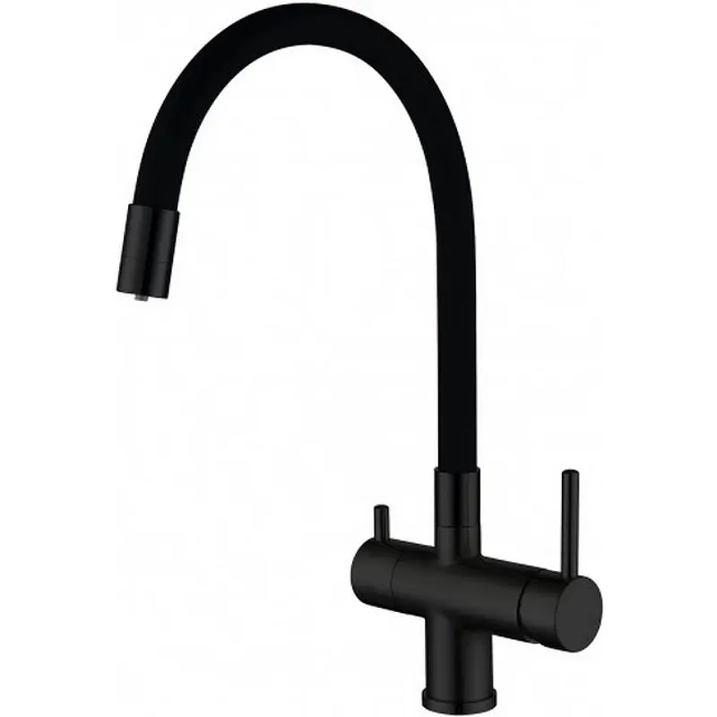 Смеситель для кухни Gappo G4398-36 с гибким изливом.Характеристики: Цвет: черный матовый. Материал: латунь. Механизм: керамический картридж. Управление: рычажное. Излив: поворотный, гибкий, с каналом для питьевой воды. Стандарт подводки: 1/2. Тип подводки: гибкая. Монтаж: на мойку. Отверстий для монтажа: 1. Аэратор. В комплекте поставки: Смеситель. Гибкая подводка. Комплект креплений.