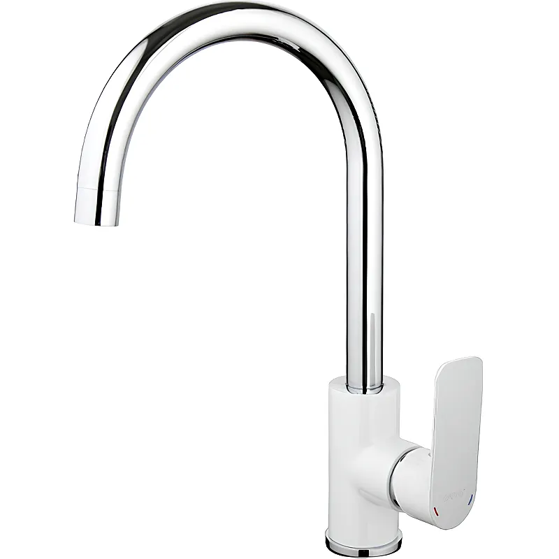 Смеситель для кухни Gappo G48 G4048 Белый Хром идеально подойдет для современных кухонь. Изготовленный из латуни, он сочетает в себе стильный белый и хромированный цвет, придавая изысканность вашему интерьеру. Данный смеситель оснащен однорычажным управлением, что обеспечивает простоту в использовании и долговечность. Его керамический картридж гарантирует плавность работы и надежность в эксплуатации.