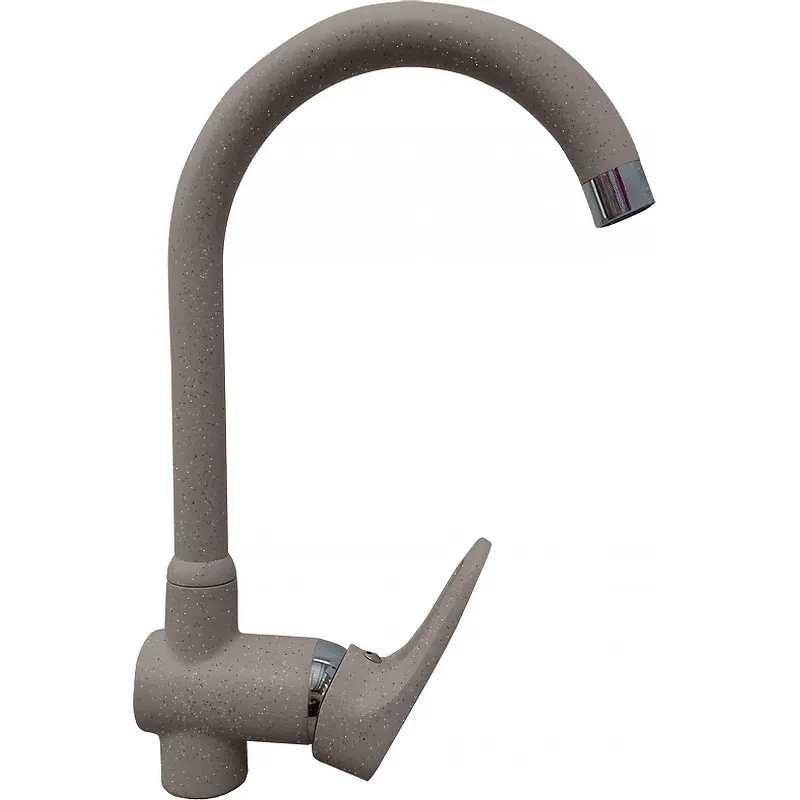 Смеситель для кухни GranFest 3023.Изготовлен с применением природных материалов. Привнесет оттенок шика и респектабельности в любой интерьер помещения.Характеристики: Цвет: серый. Материал: латунь с нанесением порошковой краски. Смеситель изготовлен из современных материалов. За счет специального покрытия обеспечивается легкий и простой уход. Гарантировано высокое качество и максимальный комфорт при эксплуатации. Поверхность смесителя наделена защитой от механических повреждений, высоких температур и экологически совершенно безопасна. Однорычажная система управления. Поворотный излив с аэратором. Керамический картридж диаметром 35 мм. Гибкая подводка G 1/2. В комплекте поставки: Смеситель. Гибкая подводка. Крепеж. Гарантийный талон.