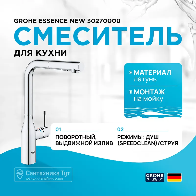 Преимущества Смесителя для кухни Grohe Essence New 30270000 Хром
