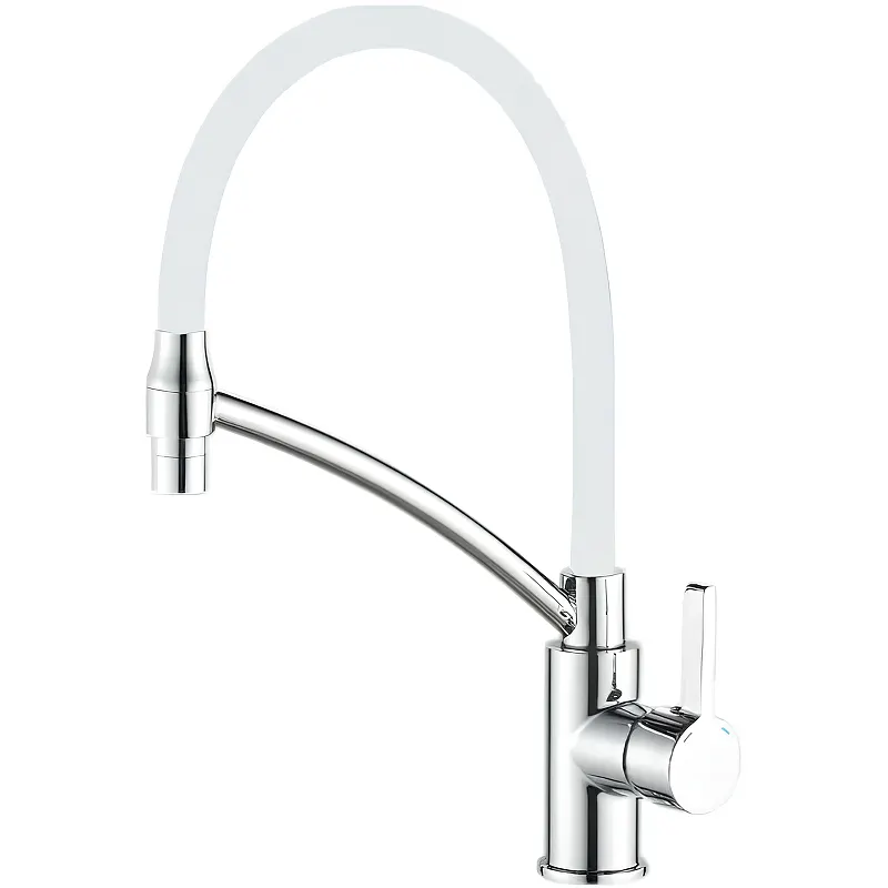 - Современный дизайн: Глянцевая поверхность и стильное сочетание хрома и белого цвета делают данный смеситель идеальным дополнением к любой современной кухне.