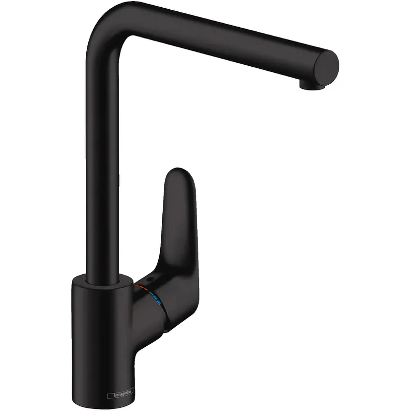 Смеситель для кухни Hansgrohe Focus 31817670.Характеристики: Цвет: черный матовый. Материал: латунь. Управление: однорычажное. Механизм: керамический картридж. Излив: поворотный. Диапазон поворота регулируется на 3 уровня: на 110 градусов, 150 градусов или 360 градусов. Стандарт подводки: G 3/8. Тип подводки: гибкая. Максимальный объем расхода воды при 3 барах: 12 л/мин. Регулируемое ограничение температуры. Совместимость с проточными водонагревателями. Технология Air Power: экономия воды благодаря смешиванию воды с воздухом. Аэратор. Монтаж: на мойку. В комплекте поставки: Смеситель для кухни. Гибкая подводка. Аэратор. Комплект креплений. Инструкция.