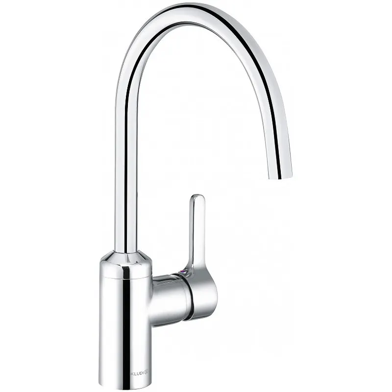 Смеситель для кухни Kludi Bingo Star 428039678. Цвет: нержавеющая сталь.Универсальный дизайн изделия дополнит большинство кухонных интерьеров в современном стиле.Характеристики:Изготовлен из сантехнической латуни с гладким покрытием, устойчивым к царапинам и потускнению. Аэратор Cache M 16,5 x 1 с регулируемым углом подачи воды. Эко-режим: расход воды снижается на 40%. Литой рычаг с плавным и мягким ходом позволяет точно регулировать температуру и напор воды. Керамический картридж. Система быстрого монтажа. Поворотный излив (360 градусов). Класс расхода воды: Z. Класс шума: I. Монтаж: на одно отверстие. Подводка: гибкая, G 3/8.В комплекте поставки: смеситель, подводка, комплект креплений.