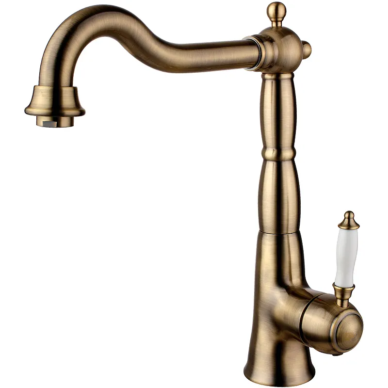 - Эстетичный дизайн в стиле ретро: Бронзовое покрытие и матовая поверхность придают смесителю изысканный внешний вид, гармонирующий с классическими и современными интерьерами.