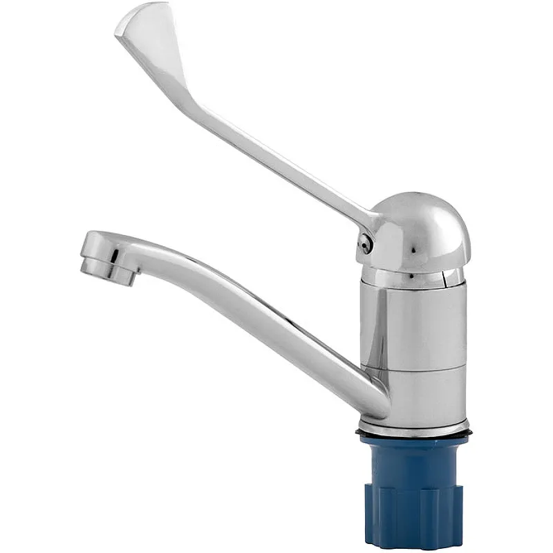 - Гигиеничность и удобство: Локтевой однорычажный механизм управления позволяет легко использовать смеситель, не касаясь его руками, что обеспечивает дополнительную гигиену.