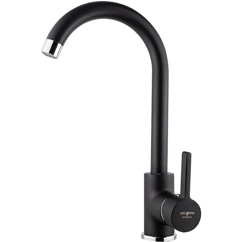 Смеситель для кухни Melodia della vita Ostessa MDV35116_bk Черный — это элегантное решение для вашей кухни, сочетающее стильный дизайн и функциональность. Этот кухонный смеситель с поворотным изливом создан для удобства и простоты использования, идеально вписываясь в современный интерьер.