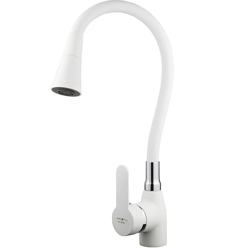Кухонный смеситель Melodia della vita Ostessa MDV40617White — идеальное сочетание стиля и функциональности для вашей кухни. Этот смеситель с гибким поворотным изливом и лейкой станет незаменимым помощником в повседневной жизни, обеспечивая удобство и практичность в использовании.