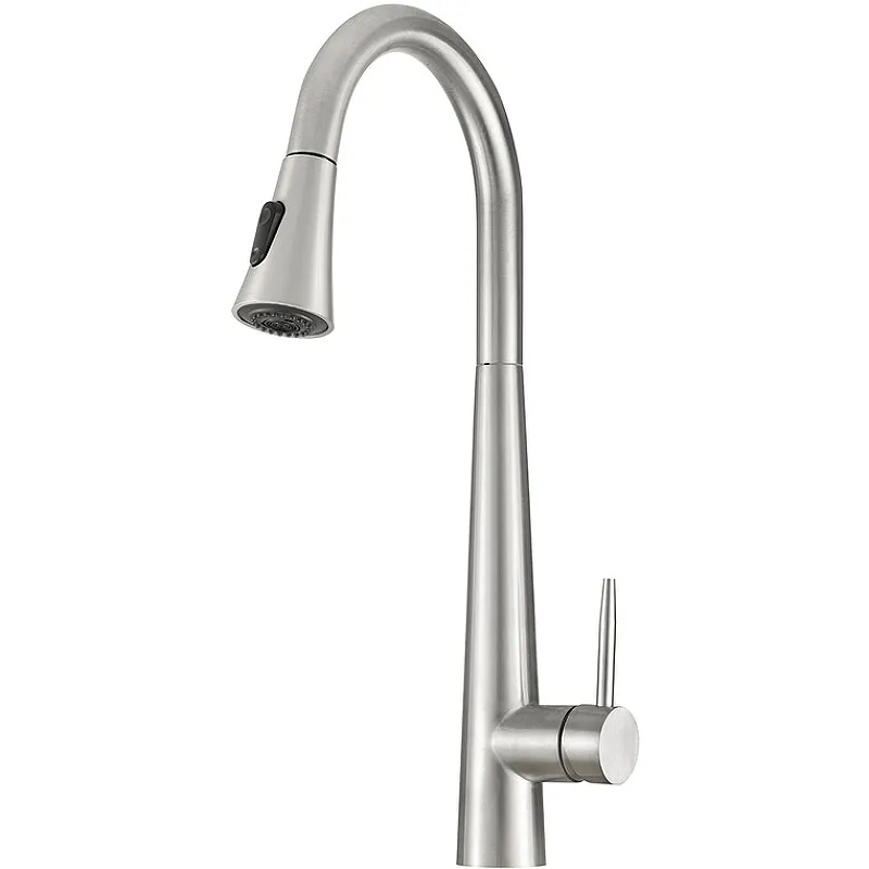 - Функциональность: Поворотный вытяжной излив с кнопкой для регулировки типа струи делает процесс мытья более комфортным.