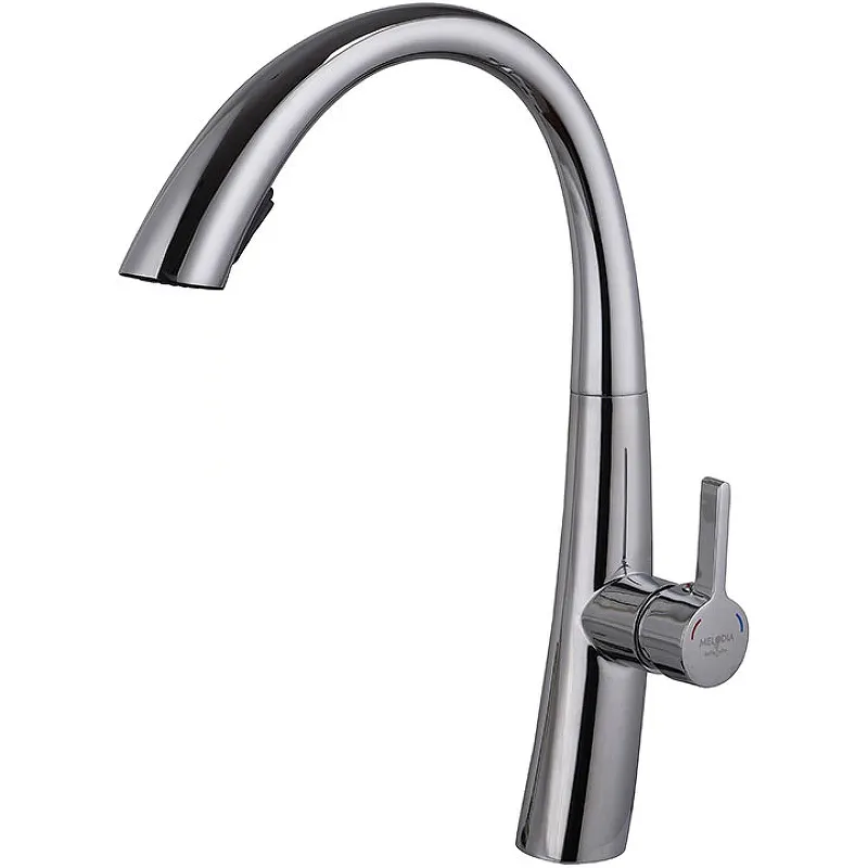 Смеситель для кухни Melodia della vita Perfetto MDV30207 — это сочетание современного дизайна и функциональности. Этот хромированный смеситель станет стильным дополнением вашей кухни, обеспечивая удобство и практичность в повседневном использовании. Благодаря вытягивающемуся и поворотному изливу, данный кухонный смеситель позволяет легко наполнять даже самые большие емкости водой.
