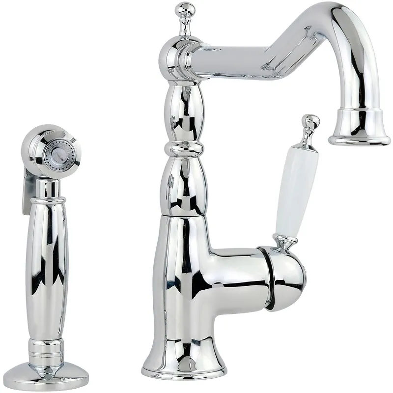 Смеситель для кухни Migliore Cucina Oxford 25796 Хром Белый — идеальное решение для ценителей изысканного дизайна и функциональности. Этот кухонный смеситель, выполненный в стиле ретро, добавит элегантности вашему интерьеру. Благодаря материалу из латуни и глянцевой поверхности, смеситель отличается долговечностью и привлекательным внешним видом.
