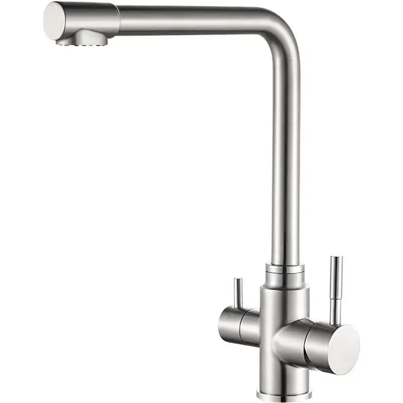 - Современный дизайн смесителя: стильное никелевое покрытие и матовая поверхность идеально дополнят кухонный интерьер.
