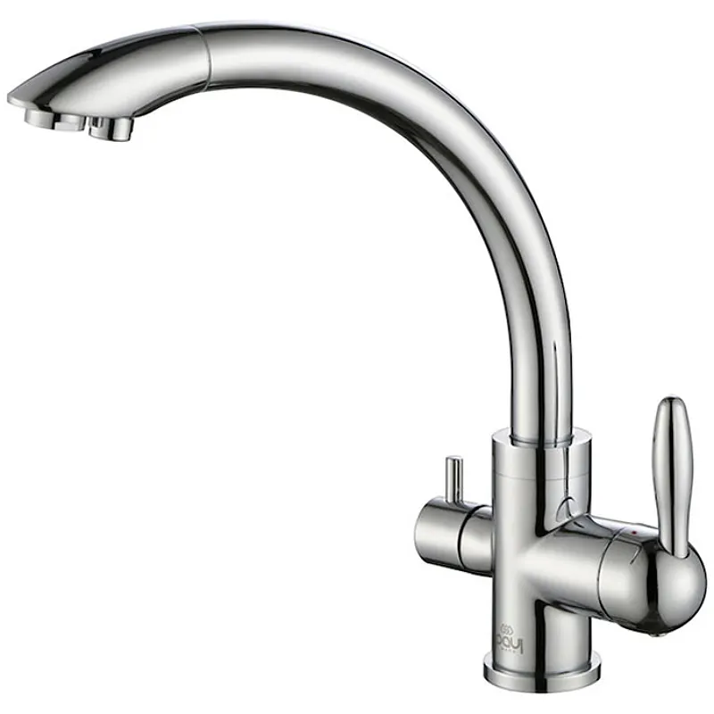 - Смеситель для кухни с возможностью подключения фильтра: отдельный канал для потока фильтрованной воды.