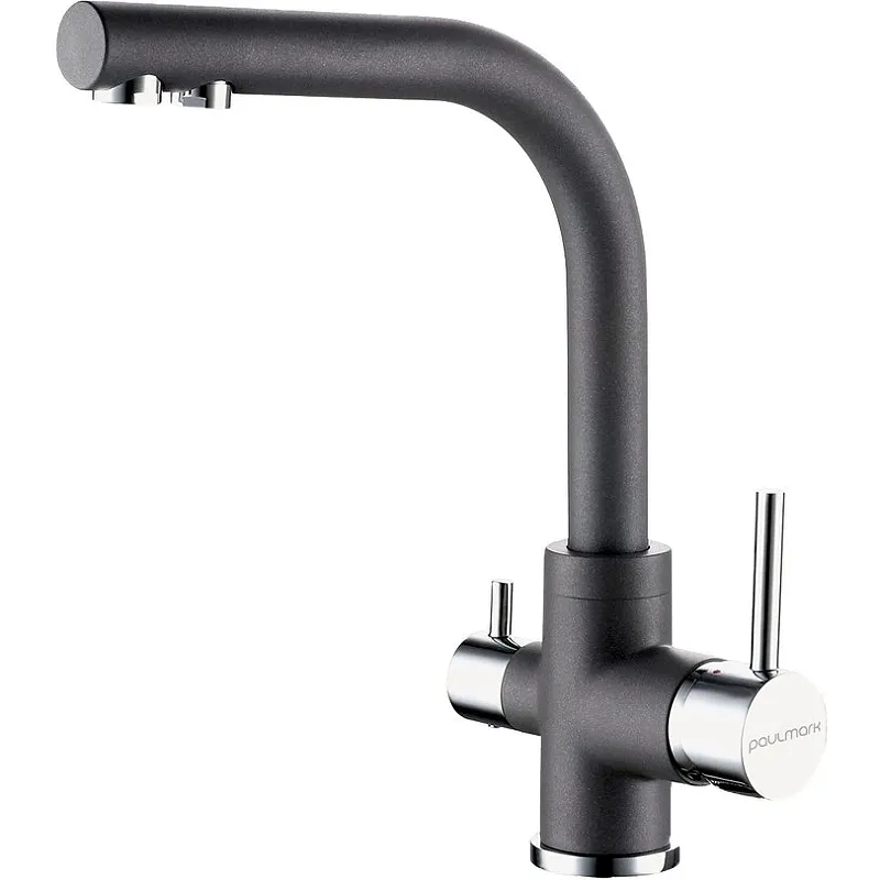 Высокий смеситель для кухни Paulmark Essen Es213011-402 однорычажный, с поворотным изливом, с возможностью подключения фильтра питьевой воды. Латунь высокого качества. Многослойное, стойкое к истиранию матовое покрытие. Долговечный керамический картридж. Съемный пластиковый аэратор. Простой монтаж.Технические данные: Цвет: серый металлик. Поверхность: матовая. Материал: латунь. Поворотный излив. Встроенный кран для питьевой воды. Подводка: гибкая, G 1/2. В комплекте поставки: смеситель; гибкая подводка; комплект креплений.