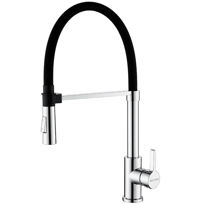 Смеситель для кухни Paulmark Halt Ha214021-CR. Изготовлен из высококачественной латуни, которая отвечает высочайшим европейским стандартам качества, не содержит свинца, не разрушается со временем и безопасна для здоровья. Характеристики: Цвет: хром. Гибкий излив из силикона. Два режима подачи воды: струя/душ. Неприхотлив в обращении и уходе. Долговечный керамический картридж диаметром 40 см. Надежная фиксация излива с помощью магнитного держателя. Смеситель прост в подключении. Поворотный излив. В комплекте поставки: смеситель; гибкая подводка 40 см; усиленный комплект креплений.