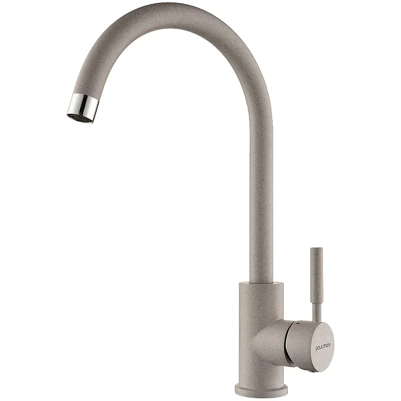 Смеситель для кухни Paulmark Holstein Ho212063-GR.Характеристики: Цвет: серый. Материал: латунь. Управление: однорычажное. Механизм: керамический картридж. Излив: поворотный на 360 градусов. Стандарт подводки: G 1/2. Тип подводки: гибкая из нержавеющей стали. Аэратор. Монтаж: на мойку, на столешницу. В комплекте поставки: Смеситель для кухни. Гибкая подводка. Усиленный комплект креплений. Запасной аэратор.