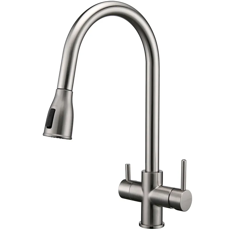 - Смеситель для кухни из латуни: Материал обеспечивает долговечность и устойчивость к коррозии.