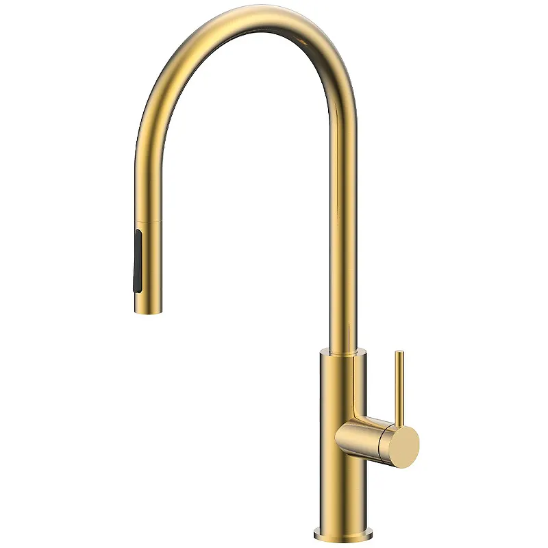 Смеситель для кухни Paulmark Senso Se215180-SBG.Высокотехнологичный смеситель для кухни Senso имеет функцию сенсорного управления. Можно включить и выключить подачу воды в бесконтактном режиме благодаря сенсору, расположенному слева на корпусе смесителя. Для максимального комфорта Senso дополнительно оснащен выдвижным изливом и функцией переключения режимов подачи воды струя/душ, управление которой производится кнопкой на конце излива.Сенсорное управление работает от 4 элементов питания АА / аккумуляторов.Характеристики: Цвет: светлое брашированное золото. Материал: латунь. Управление: сенсорное. Механизм: керамический картридж. Излив: поворотный, выдвижной. Поворот излива: 180 градусов. Бесконтактное включение и выключение водопроводной воды. Высокий изогнутый излив обеспечивает удобное наполнение высокой посуды и ваз. Функции: струя и душ для идеального промывания посуды и продуктов. Стандарт подводки: G 1/2. Тип подводки: гибкая, 60 см. Тип монтажа: гайка. Монтаж: на мойку, на столешницу. В комплекте поставки: Смеситель для кухни. Гибкая подводка. Усиленный комплект креплений. Запасной аэратор.