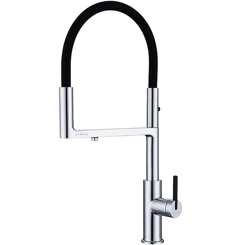 Смеситель для кухни Paulmark Tornado To213402-CR.Характеристики: Цвет: хром, черный. Материал: латунь, силикон. Управление: рычажное. Механизм: керамический картридж. Излив: поворотный, гибкий. Возможность подключения системы фильтрации питьевой воды. Два режима подачи воды: мощная струя и деликатный душ. Стандарт подводки: G 1/2. Монтаж: на мойку, на столешницу. В комплекте поставки: Смеситель. Гибкая подводка.