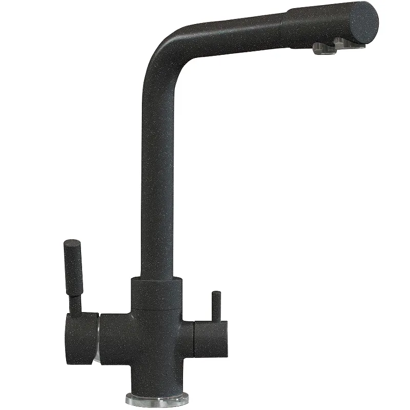 - Современный дизайн: Смеситель выполнен в матовом черном цвете, что придаст вашей кухне стильный и современный вид.