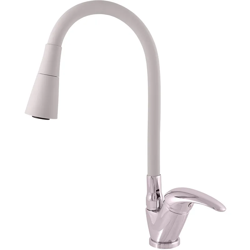 - Стильный современный дизайн: кухонный смеситель идеально впишется в любой интерьер благодаря сочетанию серого и хрома.