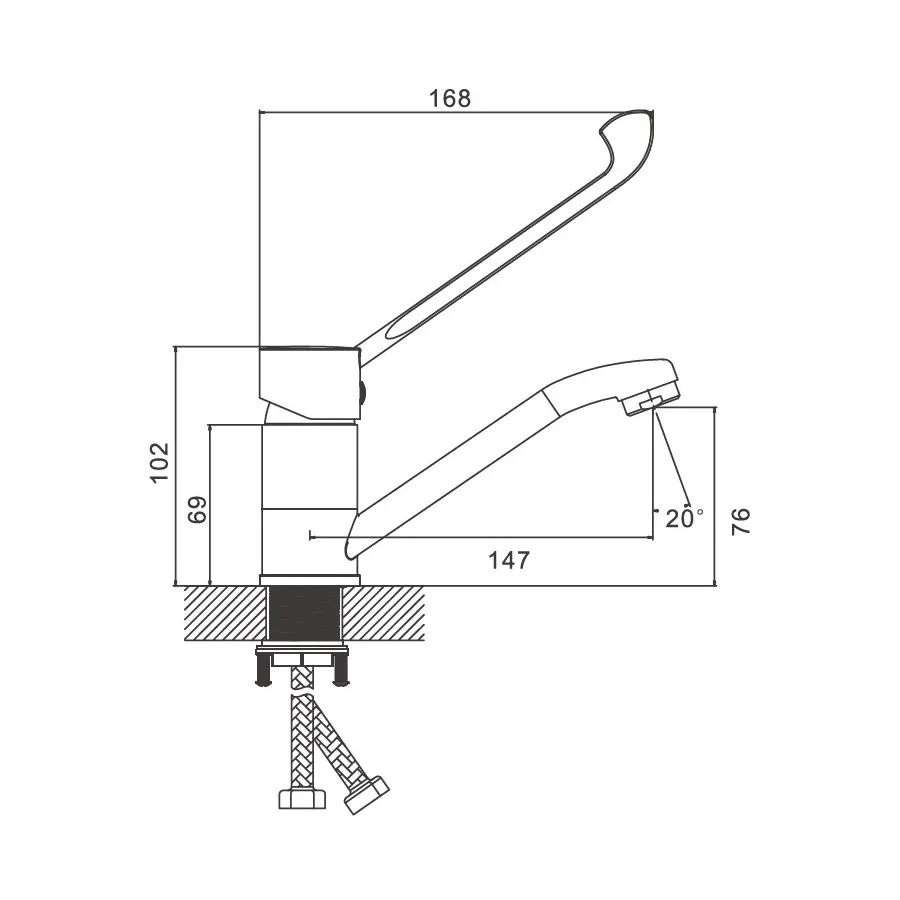Смеситель для кухни с хирургической ручкой BELZ , хром арт-B19019