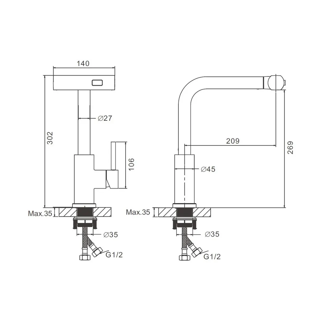 Управление смесителем осуществляется при помощи рычага, а его механизм основан на использовании керамического картриджа диаметром 35 мм. Это обеспечивает плавное и точное регулирование температуры и напора воды, делая использование смесителя максимально комфортным.