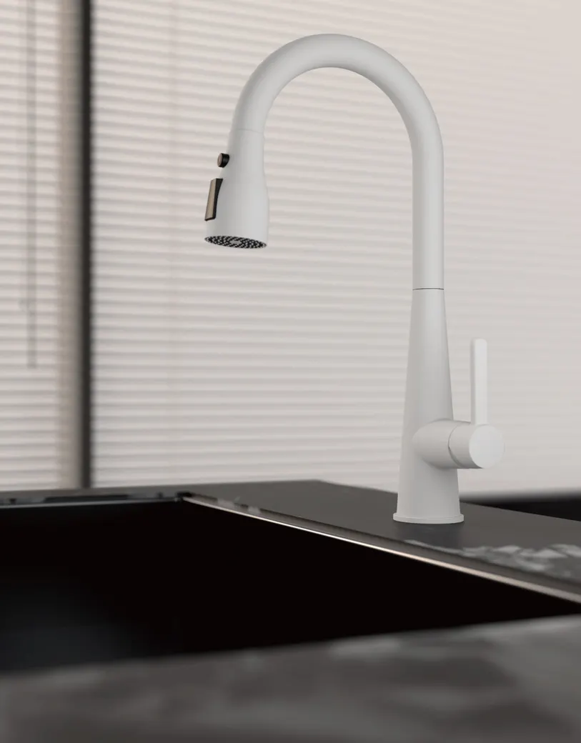 Смеситель для кухни с выдвижным изливом BELZ , белый арт-B74816-8