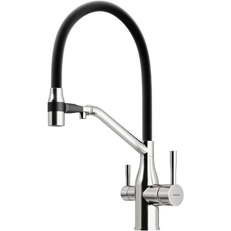 Кухонный смеситель Sancos Orta SC4008BN — это идеальное сочетание стиля и функциональности. Этот смеситель для кухни с поворотным изливом и встроенным краном для питьевой воды сделает процесс приготовления пищи и уборки максимально удобным.