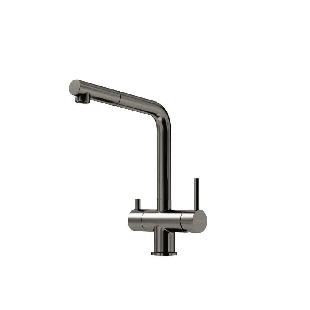 Смеситель для кухни SANCOS Spin с поворотным и вытяжным изливом, c краном для фильтрованной воды, цвет вороненая сталь, арт. арт-SC4015GG