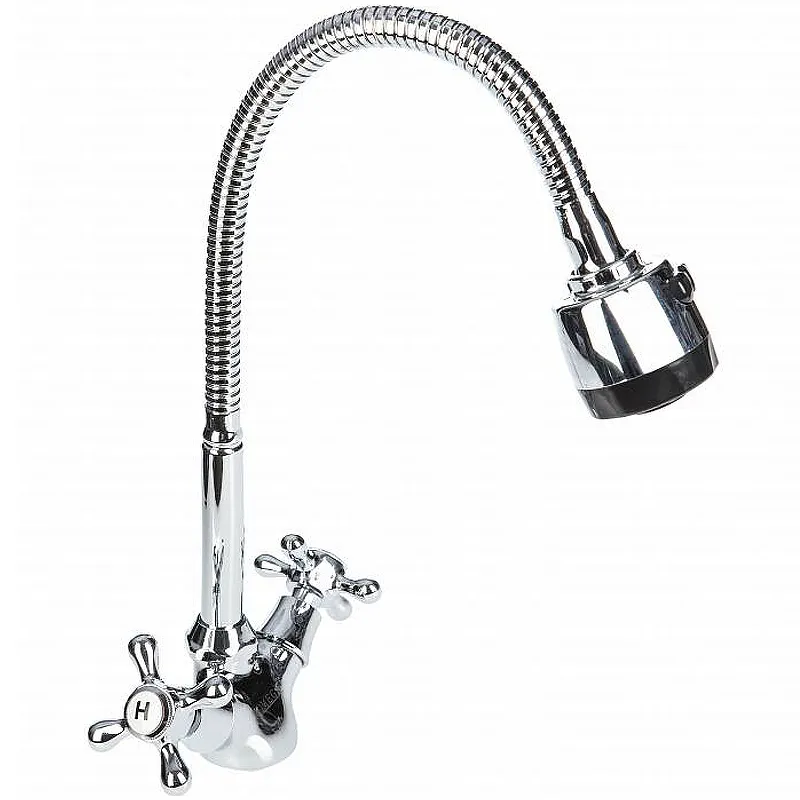 - Эстетичный дизайн: Хромированная глянцевая поверхность придаёт смесителю современный вид, который прекрасно впишется в интерьер любой кухни.