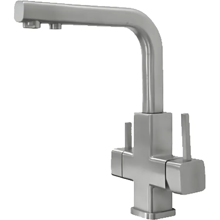 - Надежный кухонный смеситель: Изготовлен из нержавеющей стали марки AISI-304, что гарантирует долговечность и устойчивость к коррозии.