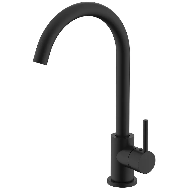 Смеситель для кухни Splenka S201.40.06.Характеристики: Цвет: черный матовый. Материал: нержавеющая сталь. Управление: однорычажное. Механизм: керамический картридж. Излив: поворотный. Стандарт подводки: G 1/2. Тип подводки: гибкая. Аэратор. Отверстия для монтажа: 1. Монтаж: на мойку/на столешницу. В комплекте поставки: Смеситель для кухни. Гибкая подводка. Комплект креплений.