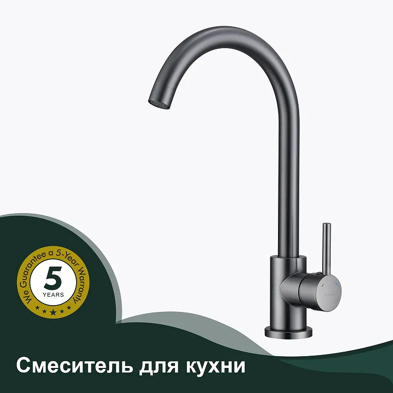 Смеситель для кухни Splenka S201.40.09.Характеристики: Цвет: графит матовый. Материал: нержавеющая сталь. Управление: однорычажное. Механизм: керамический картридж. Излив: поворотный. Стандарт подводки: G 1/2. Тип подводки: гибкая. Аэратор. Отверстия для монтажа: 1. Монтаж: на мойку/на столешницу. В комплекте поставки: Смеситель для кухни. Гибкая подводка. Комплект креплений.