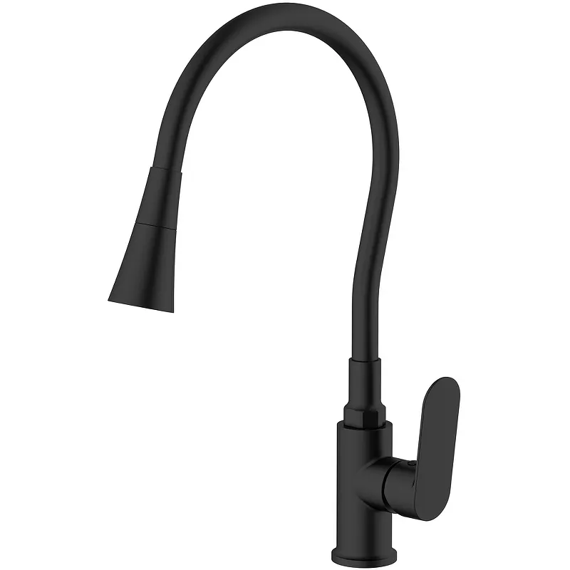 - Элегантный дизайн: Черный матовый цвет и современный дизайн смесителя идеально подойдут для любой кухни.