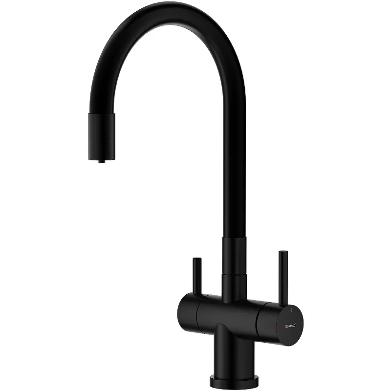 Смеситель для кухни Splenka S70.64.06.Характеристики: Цвет: черный матовый. Материал: латунь. Управление: однорычажное. Механизм: керамический картридж. Излив: поворотный (угол поворота 360 градусов), гибкий, с каналом для питьевой воды. Аэратор. Стандарт подводки: G 1/2. Тип подводки: гибкая. Отверстия для монтажа: 1. Монтаж: на мойку / на столешницу. В комплекте поставки: Смеситель для кухни. Гибкая подводка. Комплект креплений.
