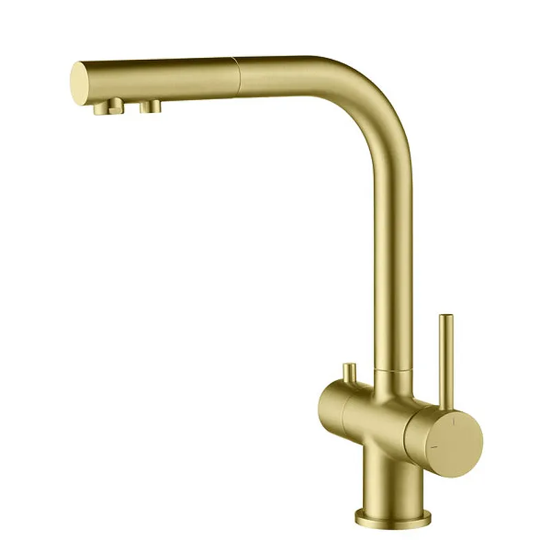 Однорычажный смеситель для кухни Timo Saona 2356/17FL с функцией фильтрации воды и выдвижным изливом.Технические данные: Цвет: суперсталь. Материал: латунь. Поверхность: матовая. Керамический картридж SilkMove. Поворотный, выдвижной излив с аэратором. Область поворота 90 градусов. Отдельная рукоятка для фильтрованной воды, керамический вентиль 1/2. Отдельные водотоки для питьевой и водопроводной воды. Стандарт подводки: G 3/8. Монтаж: на столешницу. В комплекте поставки: смеситель, гибкая подводка.